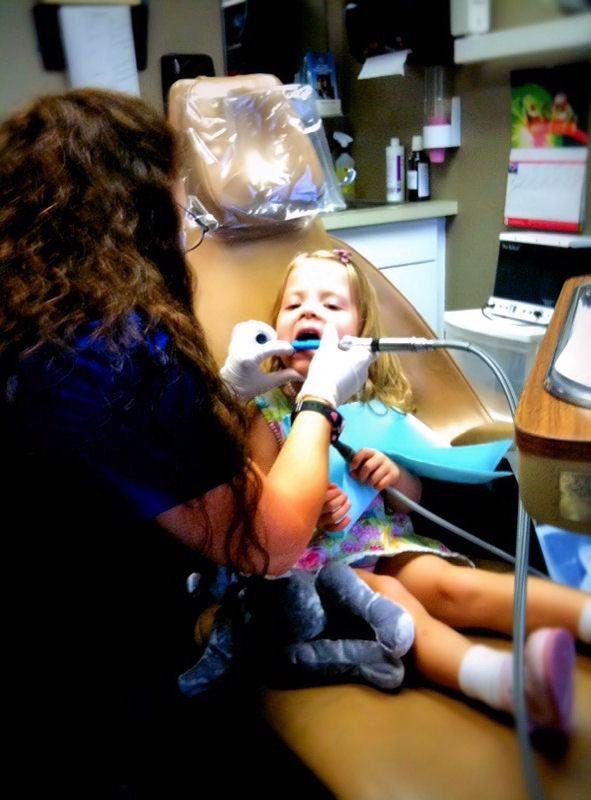 Lauren settled into the chair, and from there it was a breeze. I cannot believe it was so simple and uneventful, and it seems absurd that I have been dreading it. As I said, the hygienist was quite good. First, she wore a pink mask and had a pink watch. Score! Naturally, the girls thought she was their kind of people. Second, a lot of the gear itself was pink. Third, the hygienist let the girls carefully examine all of the instruments prior to the exam.